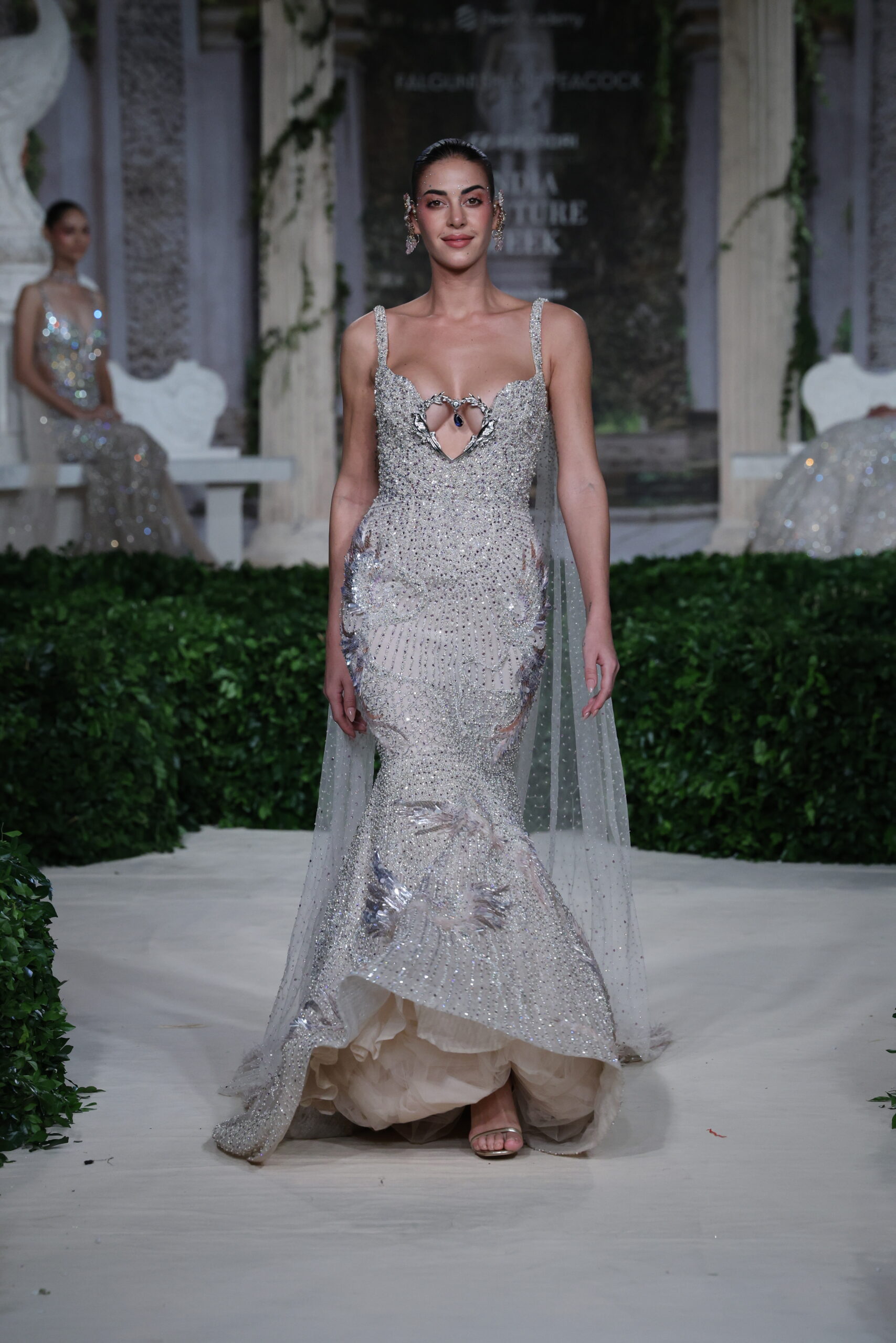 Bollywood superstar, avalanche of sequins, jazz crooner think Nat Cole King, crystal bustiers, Falguni-Shane Peacock made sure, everything glittered at ICW 2025. But you can wear your boyfriend’s denims with a pussy bow blouse and sequinned tunic they informed us!